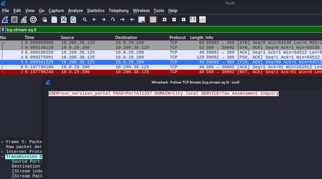 The FAQ hints that the tool connects back to the DC using a built-in service account. To see what it’s actually doing, I downloaded the Linux binary, spun up Wireshark on tun0, and launched the app.